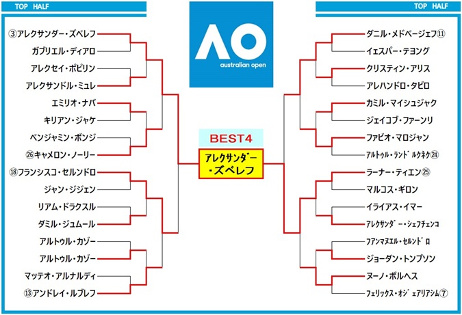 昨年の大会は、第1シードで出場したシナー(イタリア)が、第2シードのズベレフ(ドイツ)を下し、三年連続の全豪オープン優勝を飾りました。