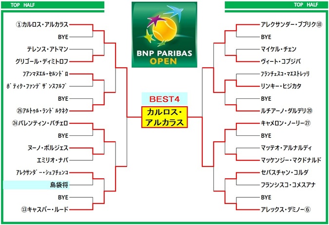 今年は、未だ今年に入って負けなし(12勝0敗)のアルカラスを中心に、シナーやジョコビッチといった現トップ3が優勝候補筆頭なのは間違いないでしょうが、インディアンウェルズで相性の良いメドベージェフやルーネなどが優勝に絡んでくるとより面白くなるでしょうね。